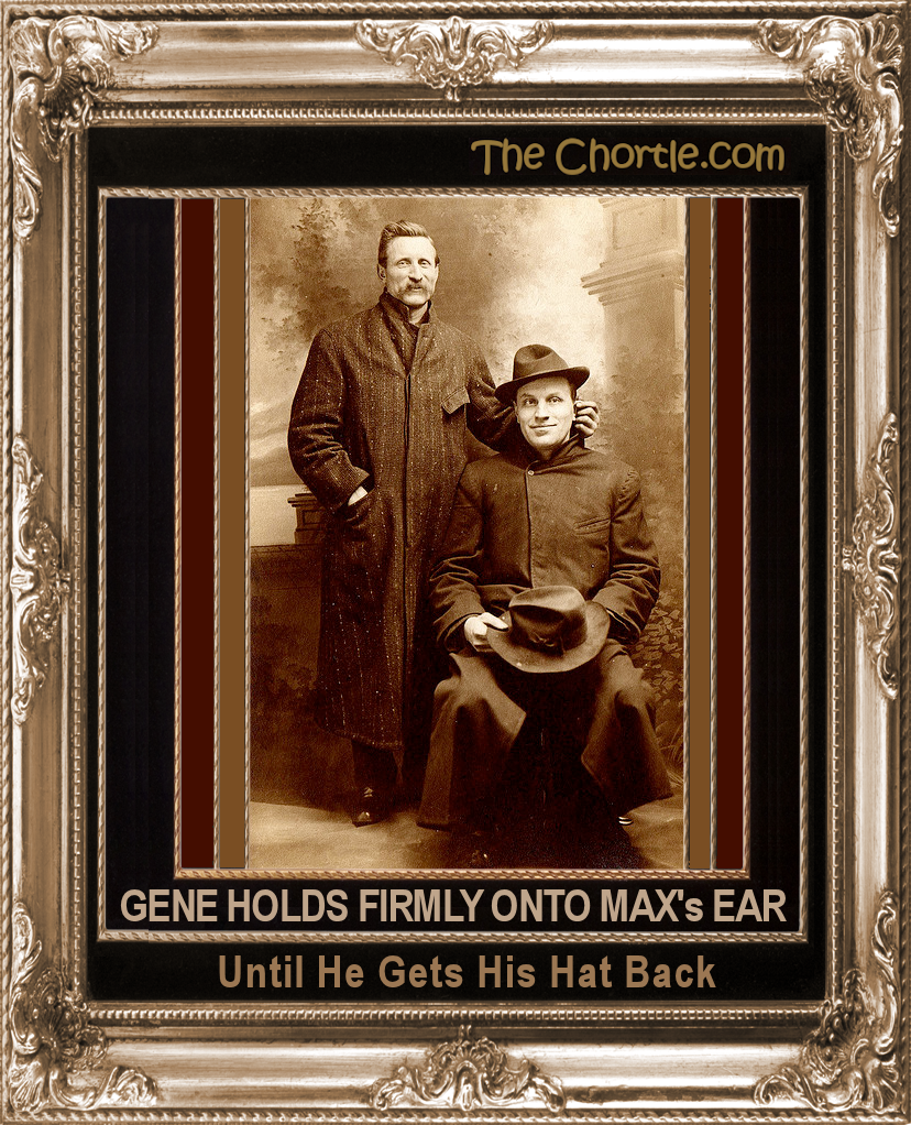 Gene holds firmly onto Max's ear until he gets his hat back.
