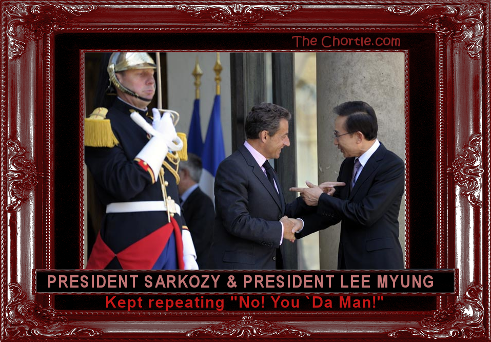 President Sarkozy & President Lee Myung trade a sequence of "No! You `Da Man!"'s