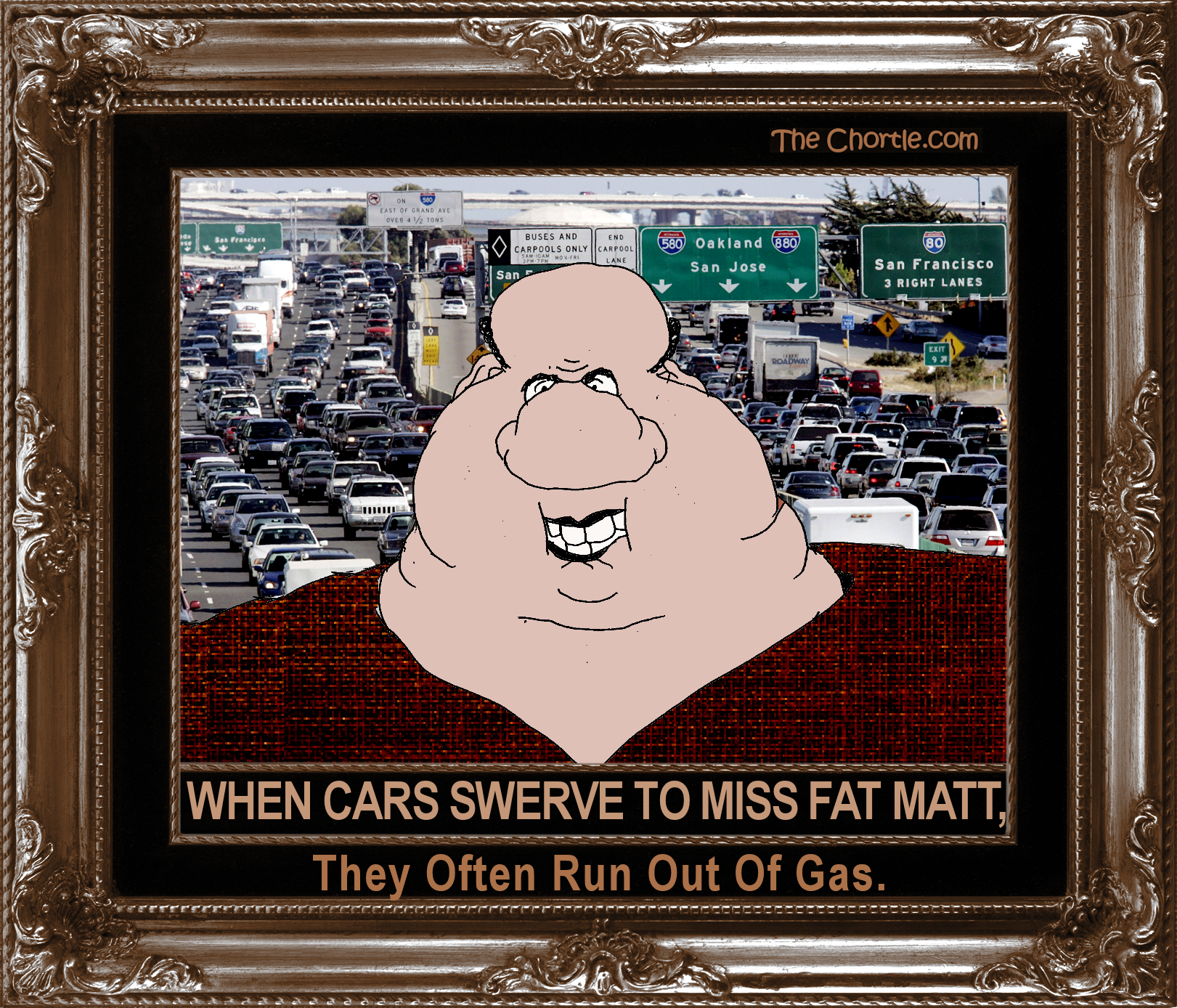 When cars swerve to miss Fat Matt, they often run out of gas