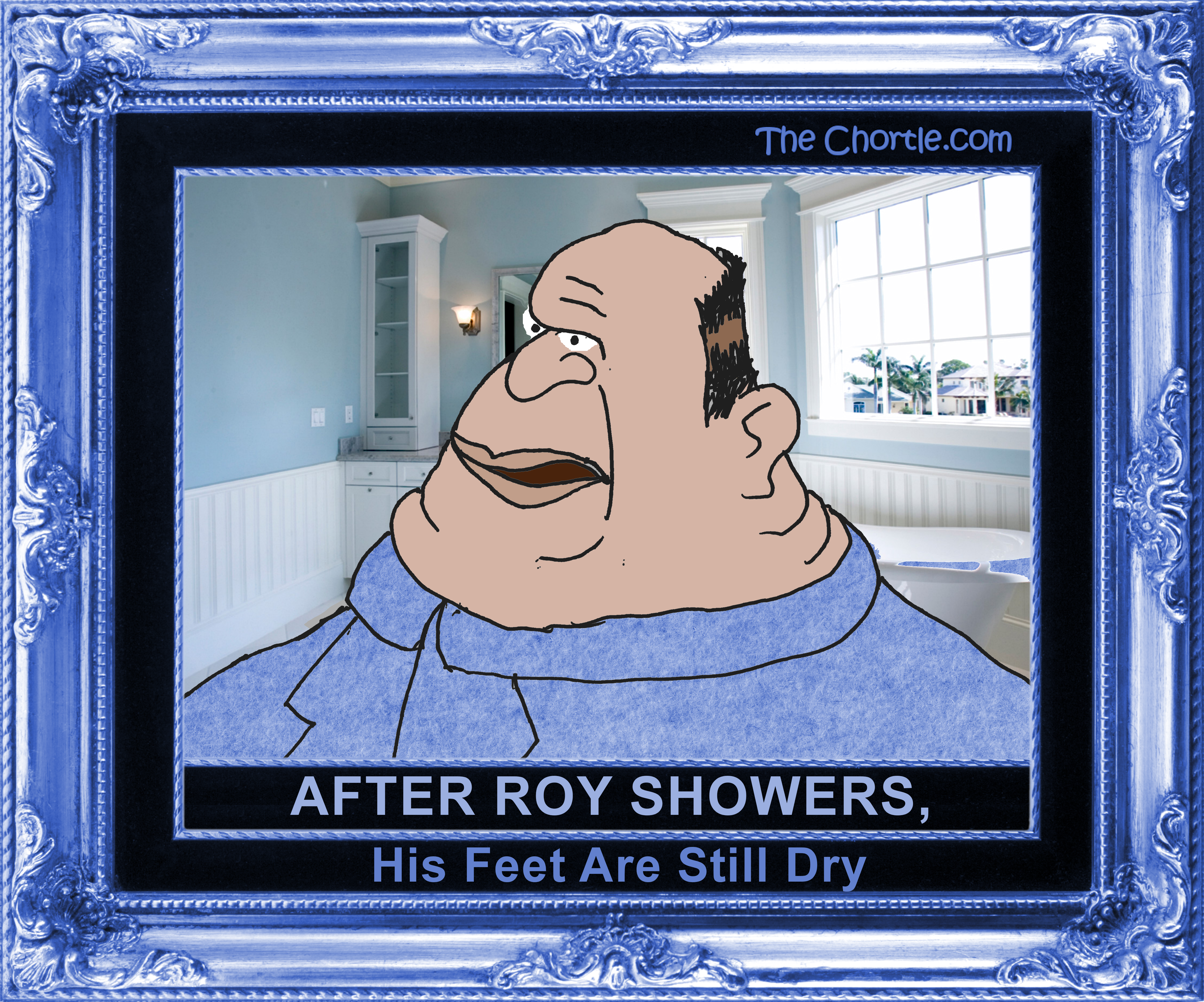 After Roy showers, his feet are still dry