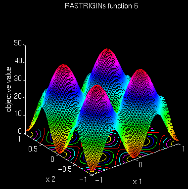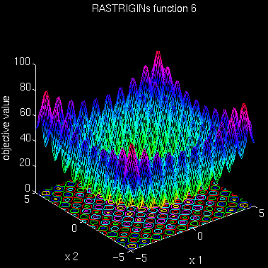 2. Use the same PSO with the same parameters to minimize Rastrigin's function in 5 dimensions. This test function is highly multimodal. However, the location of the minima are regularly distributed.