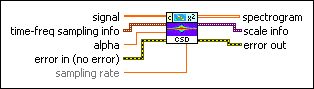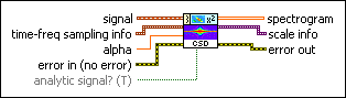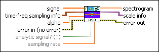 scale info returns the time scale and the frequency scale information of the time-frequency representation, including the time offset, the time interval between every two contiguous rows, the frequency offset, and the frequency interval between every two contiguous columns of spectrogram. Use the TFA Get Time and Freq Scale Info VI to return detailed information about the time scale and the frequency scale. | ||||